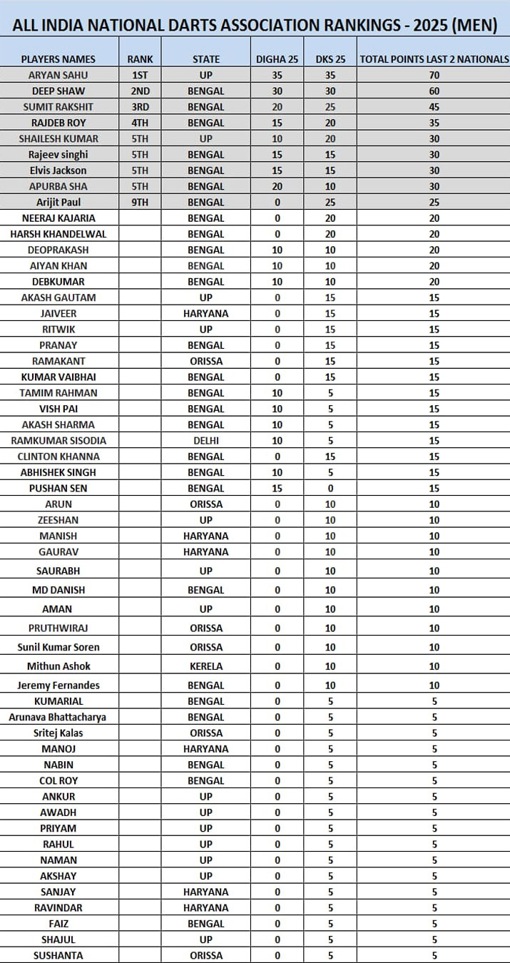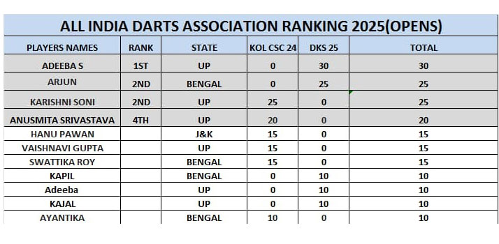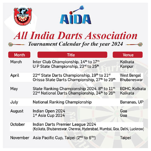 All India Darts Association, though still very young, has done a plethora of events to popularize the game and remodeled it from a game of elite to a game that can be played by the ordinary mass. It has organized competitions in all levels like Clubs, Schools, Corporates, States, Zonal and National among others.