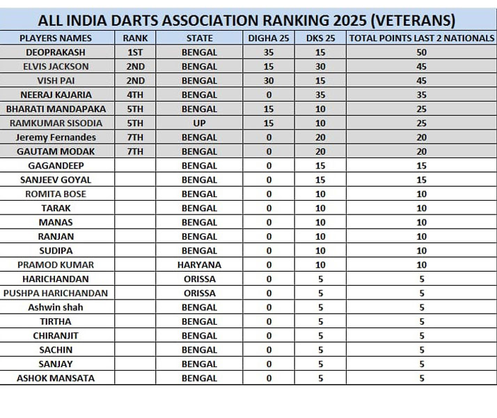 All India Darts Association, though still very young, has done a plethora of events to popularize the game and remodeled it from a game of elite to a game that can be played by the ordinary mass. It has organized competitions in all levels like Clubs, Schools, Corporates, States, Zonal and National among others.